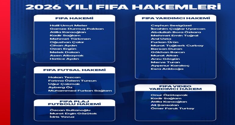 2026 yılında FIFA kokartı takmaya hak kazanan hakemler listesi belirlenmiştir.
