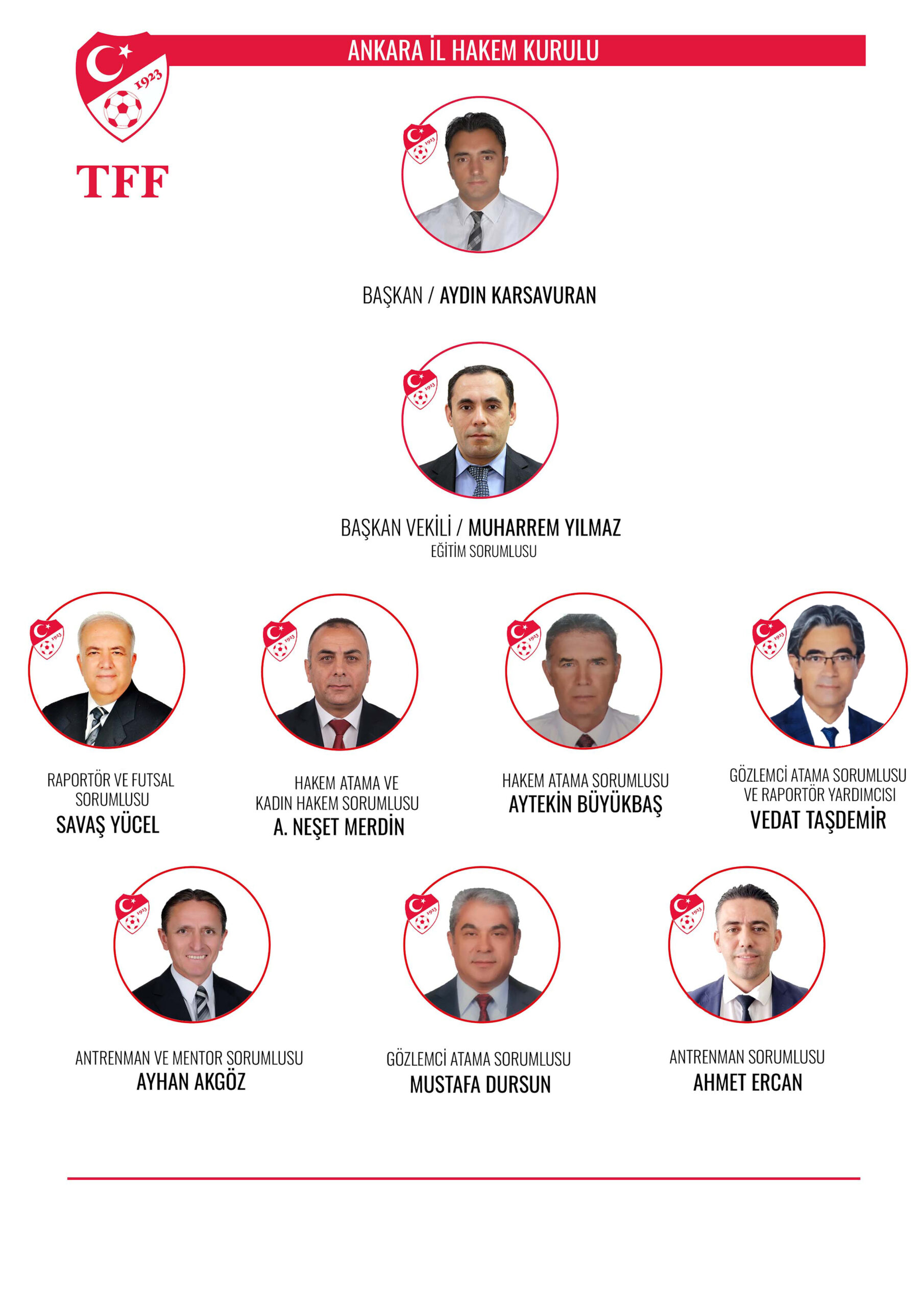 Başkan Sn. Aydın KARSAVURAN ve Kurul Üyelerinin katılımıyla yapılan toplantıda; Ankara İl Hakem Kurulu Başkanlığı’nın görev dağılımı aşağıda belirtildiği şekilde yapılmıştır.