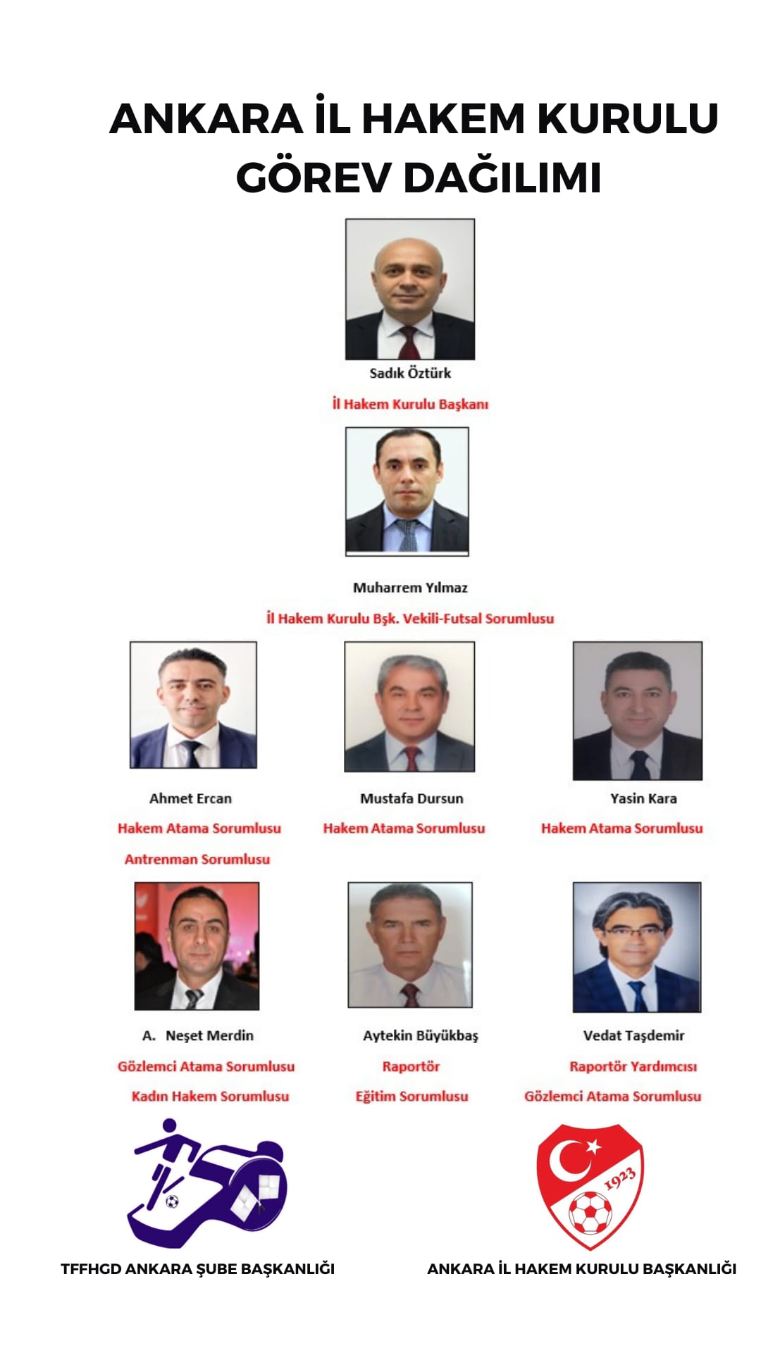 Merkez Hakem Kurulu’nun 6 Eylül 2024 tarih ve 3 nolu toplantısında alınan karar gereği yeniden oluşturulan Ankara İl Hakem Kurulu görev dağılımı yapılmıştır.