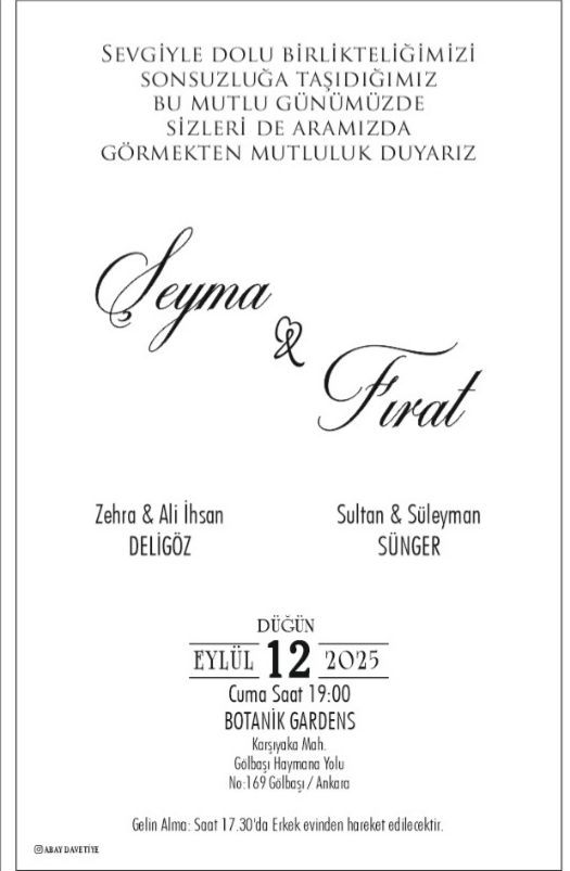 Fırat Sünger Evleniyorİl Hakemlerimizden Fırat Sünger Şeyma Deligöz ile Dünya evine giriyor. Düğün törenine tüm üyelerimizi davet eder, çiftimize mutluluklar dileriz.TFFHGD ANKARA ŞUBESİ 2025-09-02