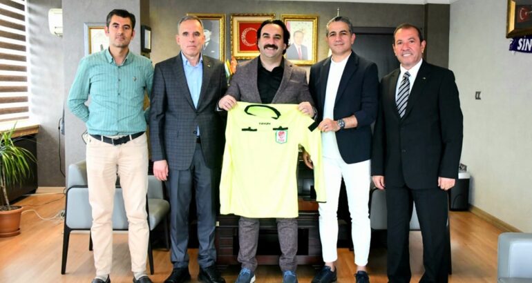 Karşılıklı sohbet ve bilgi alışverişinde bulunulan toplantının sonunda Şube Başkanımız Suat ONAY tarafından Sayın Mustafa ÇELİK’e bir hakem forması takdim edildi.