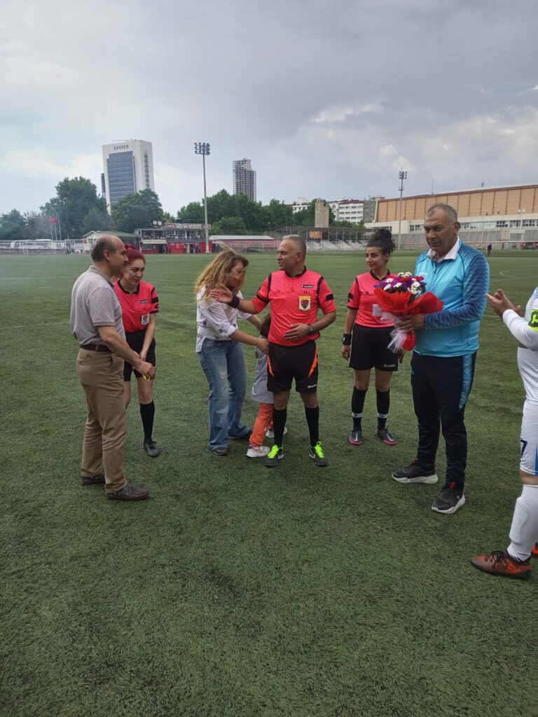 Deneyimli hakemlerimizden Hasan IŞIKTAŞ 12.06.2022 tarihinde 19 Mayıs 1 Nolu Dış Sahada yönettiği müsabaka ile hakemlik kariyerine nokta koydu. Müsabaka öncesinde TFFHGD Ankara Şube Başkanımız Sayın Ali ULUYOL ve Ankara İl Hakem Kurulu Başkanı Sayın Ali YILDIZ tarafından çiçek taktim edilen IŞIKTAŞ müsabakanın ardından hakemlerin omzunda sahayı terk etti.