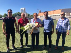 İl gözlemcilerimizden Sayın Rüştü DİKBASAN yaş haddinden dolayı gözlemciliğe veda etti.03.07.2022 Pazar Günü 19 Mayıs Dış Sahalarda 1.Küme Play-Off Müsabakasında son kez görev yapan Rüştü DİKBASAN’a Dernek Yönetim Kurulu Üyemiz Sayın Mustafa Merdin tarafından plaket, İl Hakem Kurulu Başkanımız Sayın Ali YILDIZ tarafından ise çiçek takdim edildi. Törende ayrıca Bölgesel Kurul Üyemiz Sayın Necdet SEVİM ve İHK üyeleri de hazır bulundu.