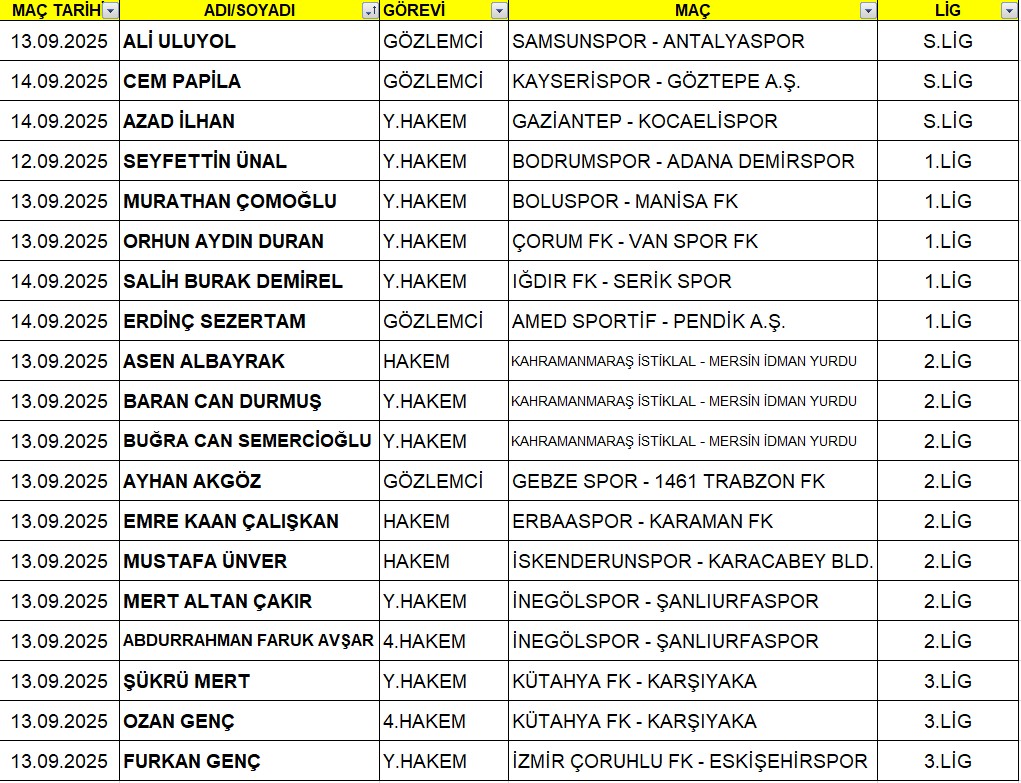 Tüm Klasmanlarda Görev Yapacak Üyelerimize Başarılar DilerizBu Hafta Tüm profosyenel liglerde Ankara Bölgemizden görev yapacak Üyelerimize başarılar dilerizTFFHGD ANKARA ŞUBESİ 2025-09-11
