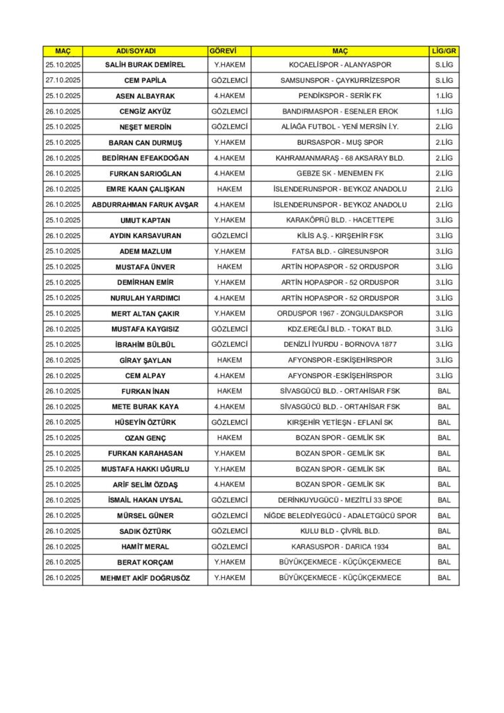 Tüm Klasmanlarda Görev Yapacak Üyelerimize Başarılar DilerizBu Hafta Tüm profosyenel liglerde Ankara Bölgemizden görev yapacak Üyelerimize başarılar dilerizTFFHGD ANKARA ŞUBESİ 2025-10-23