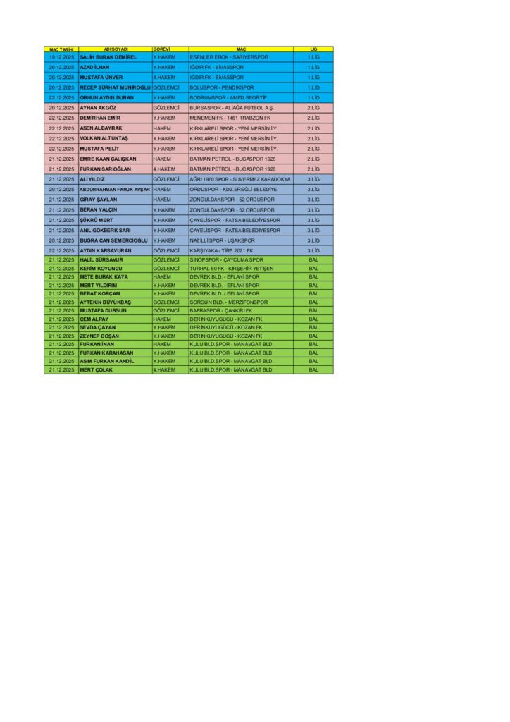 Tüm Klasmanlarda Görev Yapacak Üyelerimize Başarılar DilerizBu Hafta Tüm profosyenel liglerde Ankara Bölgemizden görev yapacak Üyelerimize başarılar dilerizTFFHGD ANKARA ŞUBESİ 2025-12-19