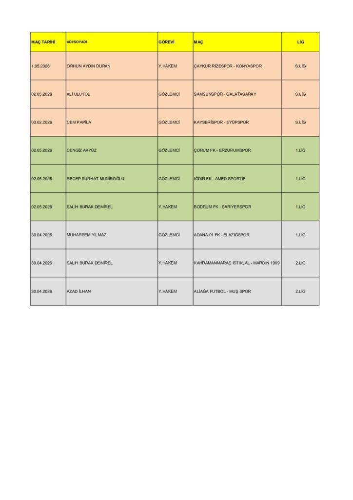 Tüm Klasmanlarda Görev Yapacak Üyelerimize Başarılar DilerizBu Hafta Tüm profosyenel liglerde Ankara Bölgemizden görev yapacak Üyelerimize başarılar dilerizTFFHGD ANKARA ŞUBESİ 2026-04-30