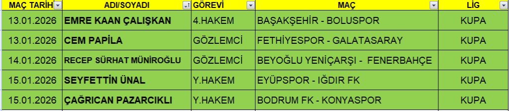 Türkiye Kupasında Görev Yapacak Üyelerimize Başarılar DilerizBu Hafta Türkiye Kupasında Ankara Bölgemizden görev yapacak Üyelerimize başarılar dilerizTFFHGD ANKARA ŞUBESİ 2026-01-12